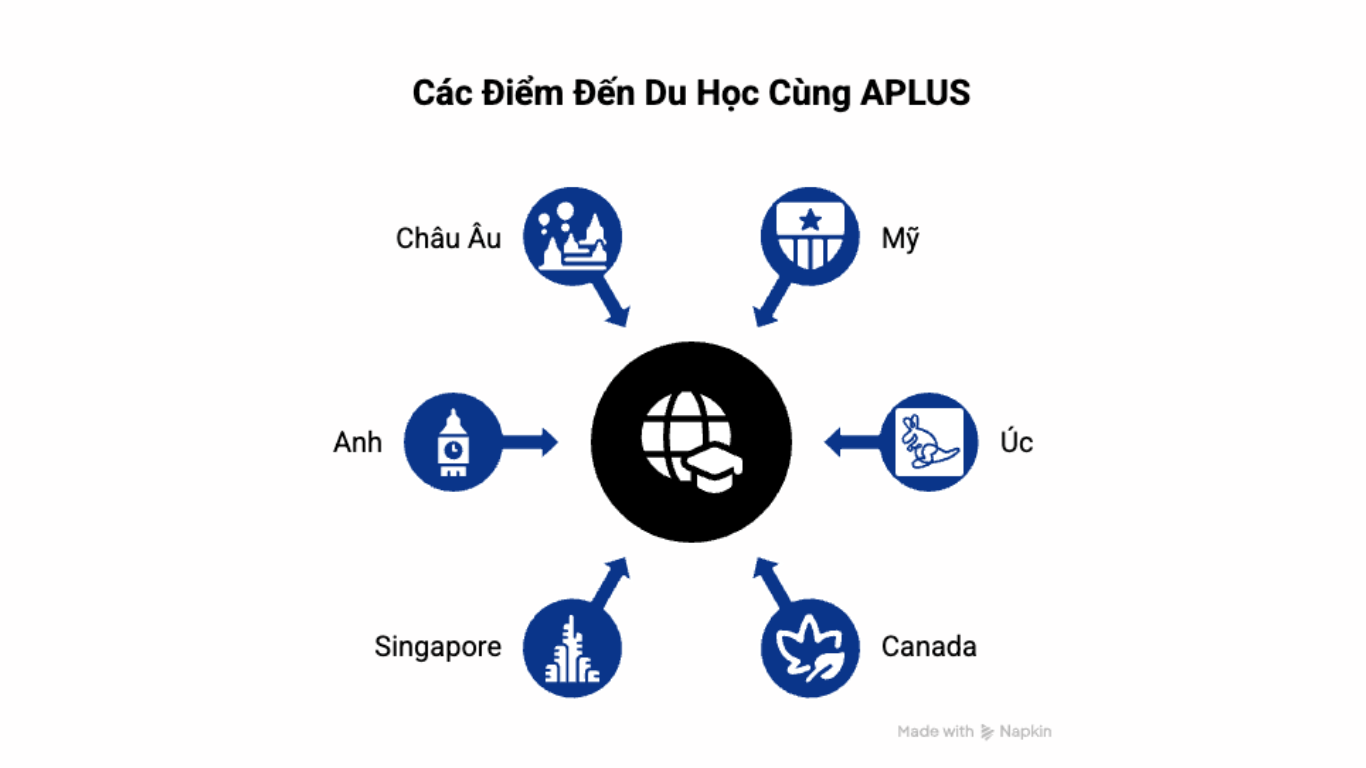 • Du học Úc: Với APLUS, bạn sẽ nhận được sự hỗ trợ từ chọn trường, ngành học đến xin visa du học Úc một cách nhanh chóng và hiệu quả.