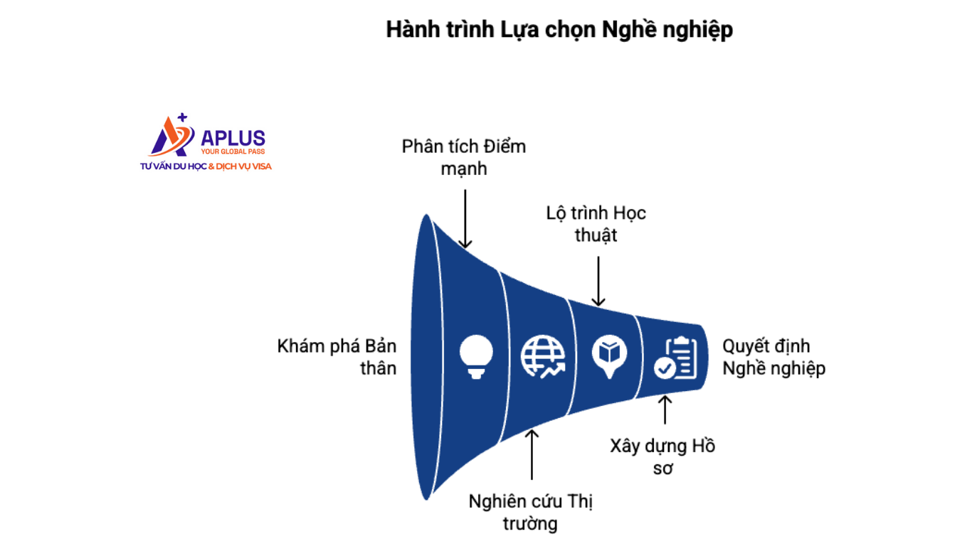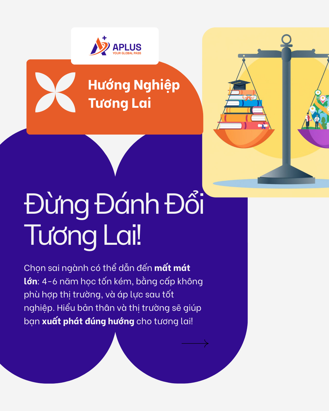 Tại APLUS, định hướng ngành học không phải là vài câu hỏi sở thích hời hợt. Đó là quy trình chuyên sâu có dữ liệu, kết hợp phân tích tính cách – năng lực – xu hướng nghề nghiệp tương lai – tỷ lệ định cư và mức thu nhập bền vững.